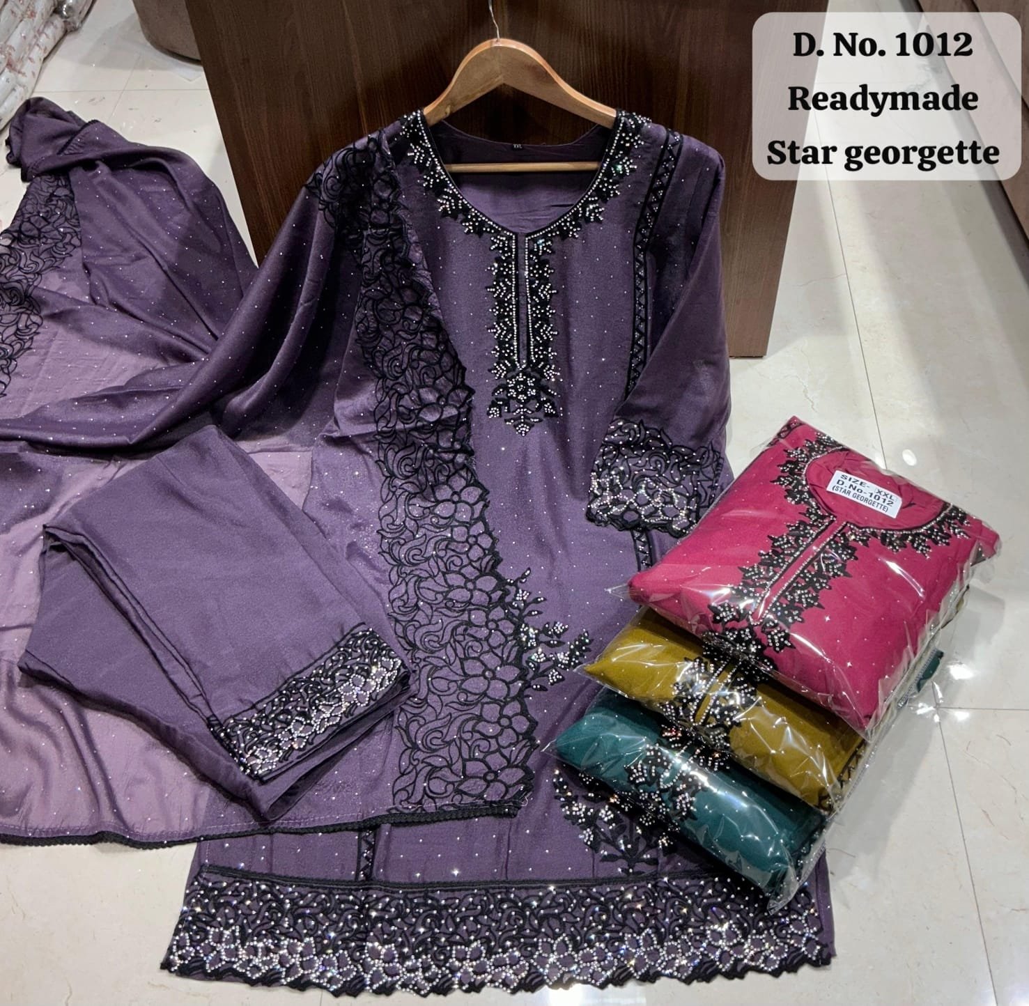 Make a bold statement at your next event with this exquisite Readymade Star Georgette Salwar Suit Set. Featuring a deep, royal Wine Purple shade, this ensemble combines traditional craftsmanship with modern elegance. The heavy embroidery and sparkling stone accents make it a standout choice for parties, weddings, and festive celebrations.